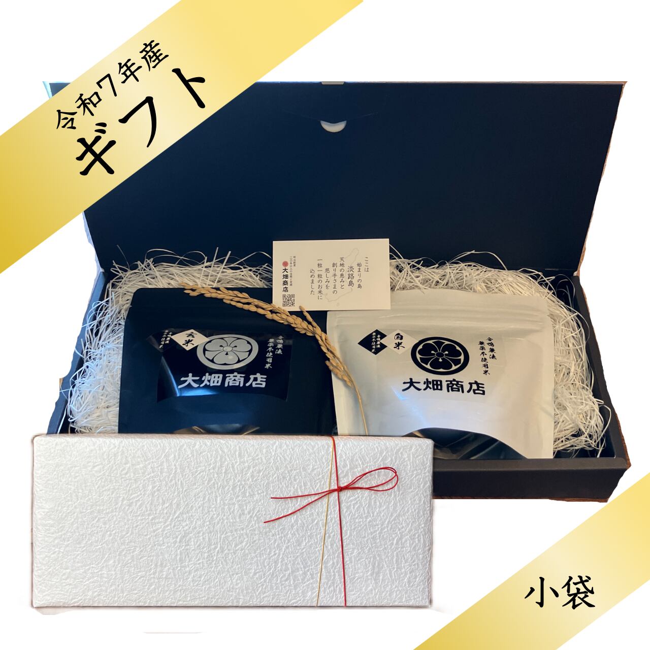 【ギフト】淡路の米 | かわいい小袋 玄米&白米2合セット | 自然栽培 | 農薬不使用・化学肥料不使用 | キヌヒカリ 令和7年【2合】(しっかり)